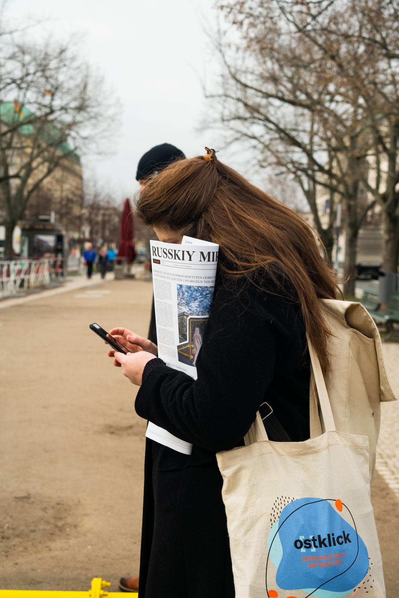 Окрім інсталяції, також надрукували газету Russkiy Mir Zeitung — у ній зібрали оригінальні матеріали з російських ЗМІ, перекладені німецькою.