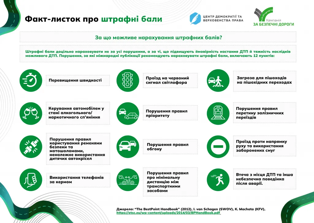 На сьогодні одним із найбільш ефективних та дієвих інструментів для боротьби з порушниками на дорогах, а особливо самопроголошеними "шумахерами", які несуть відповідальність за більшість серйозних ДТП, називають систему штрафних балів для водіїв, які нараховують у разі вчинення ними правопорушень на дорозі.