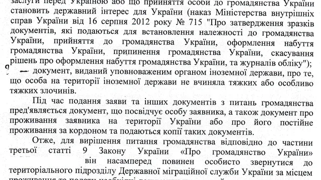 Після цього я написав звернення на ім'я міністра внутрішніх справ, з проханням клопотати перед Президентом України про надання мені українського громадянства. Міністр нічого не відповів, але переадресував мій запит до Міграційної служби. Звідти мені прислали лист з наданням інформації про те, що будь-який іноземець може отримати громадянство відповідно до закону. Це не можна вважати відповіддю на питання, яке я задав. Якби мені Аваков написав, що відмовляє у моєму проханні — я б зрозумів. Але мені з Міграційної служби прислали виписку з законодавства.