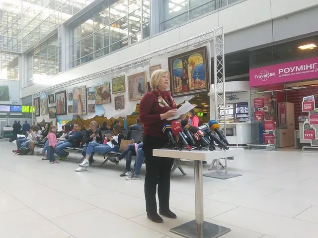 На запитання журналістів одразу після прильоту вона відповідала в залі очікування аеропорту "Жуляни".