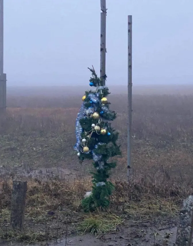 Українські захисники встановили за 6 кілометрів від Бахмута головну ялинку країни. Її закріпили на одному зі стовпів.