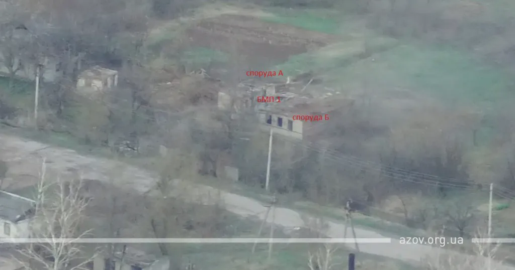 БМП була схована за приватними будинками. Азовці завдали влучних пострілів по машині, вона загорілася та була повністю знищена.