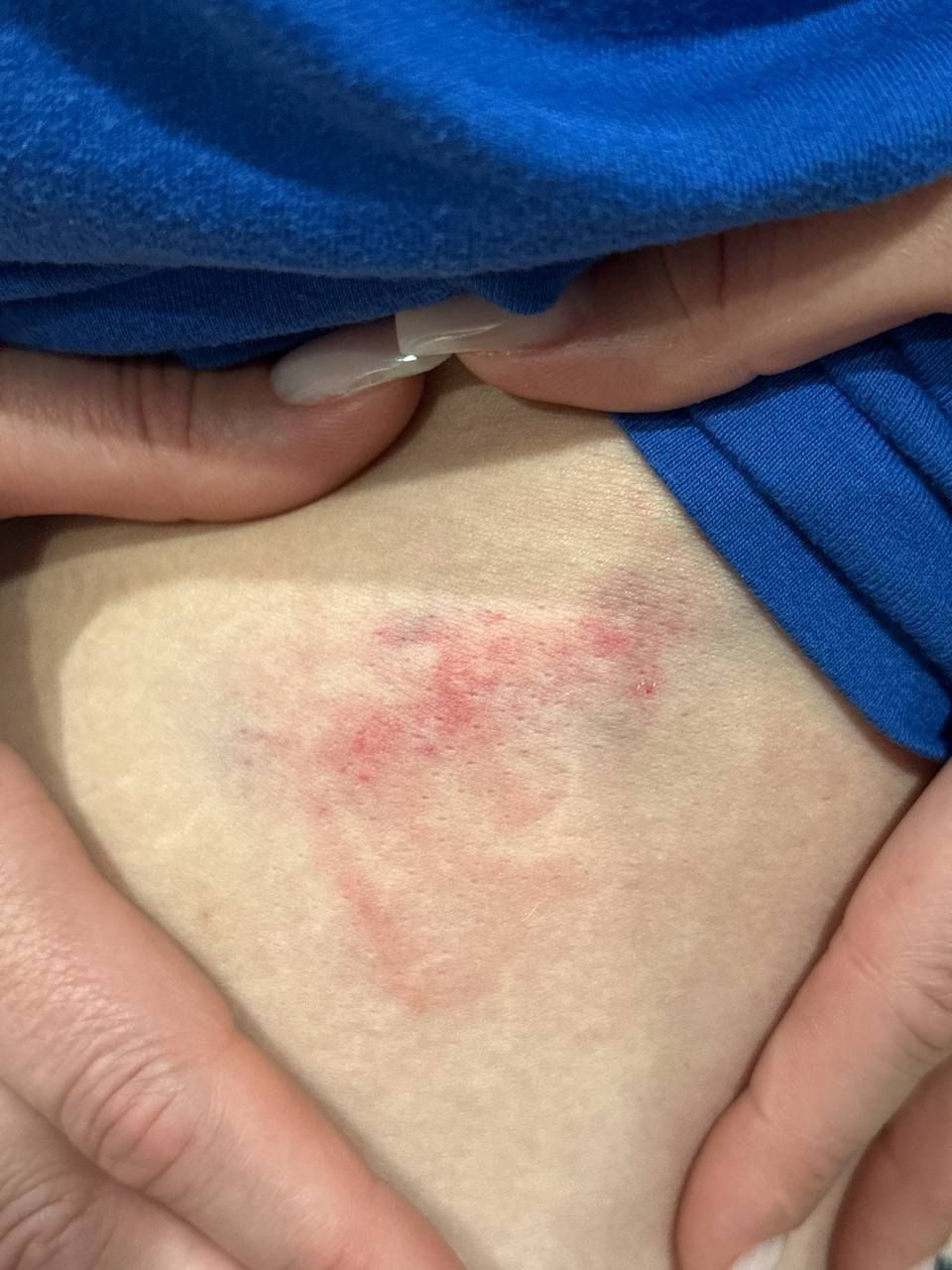 - Після інциденту блогерка показала удари та синці, а також ремінь з радянською зіркою, яким її били.