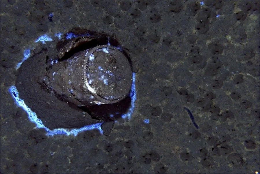 Деякі бочки оточені білими колами, які є наслідком накопичення забруднюючих речовин, що витікають назовні / Фото Девід Валентайн / ROV Jason