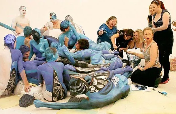 Вона розповіла, що спершу роздрукувала зображення побитого авто, після чого наклала оголені тіла на нього.