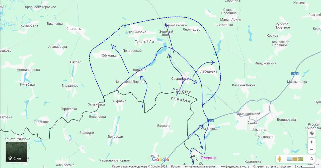 Станом на ранок 7 серпня у російських телеграм-каналах з'явилась інформацію про те, що ЗСУ нібито зайняли прикордонні села Миколаєво-Дар'їно, Дар'їно та Свердликове.