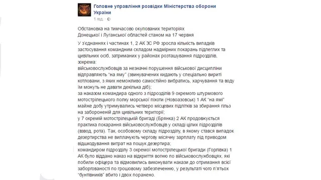 Під час однієї з таких сутичок так званий командир підрозділу 3 окремої мотострілецької бригади (Горлівка) 1 АК віддав наказ відкрити вогонь по своїх бійцях. Перед тим вони побили так званого офіцера та відмовились виконувати накази до отримання всієї заборгованості. Про це повідомили у Головному управлінні розвідки Міноборони.
