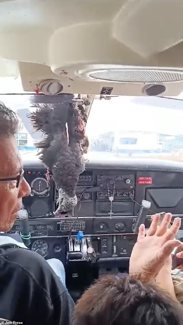 Птах пробив скло та загинув. До кінця польоту його тіло висіло поряд з пілотом.