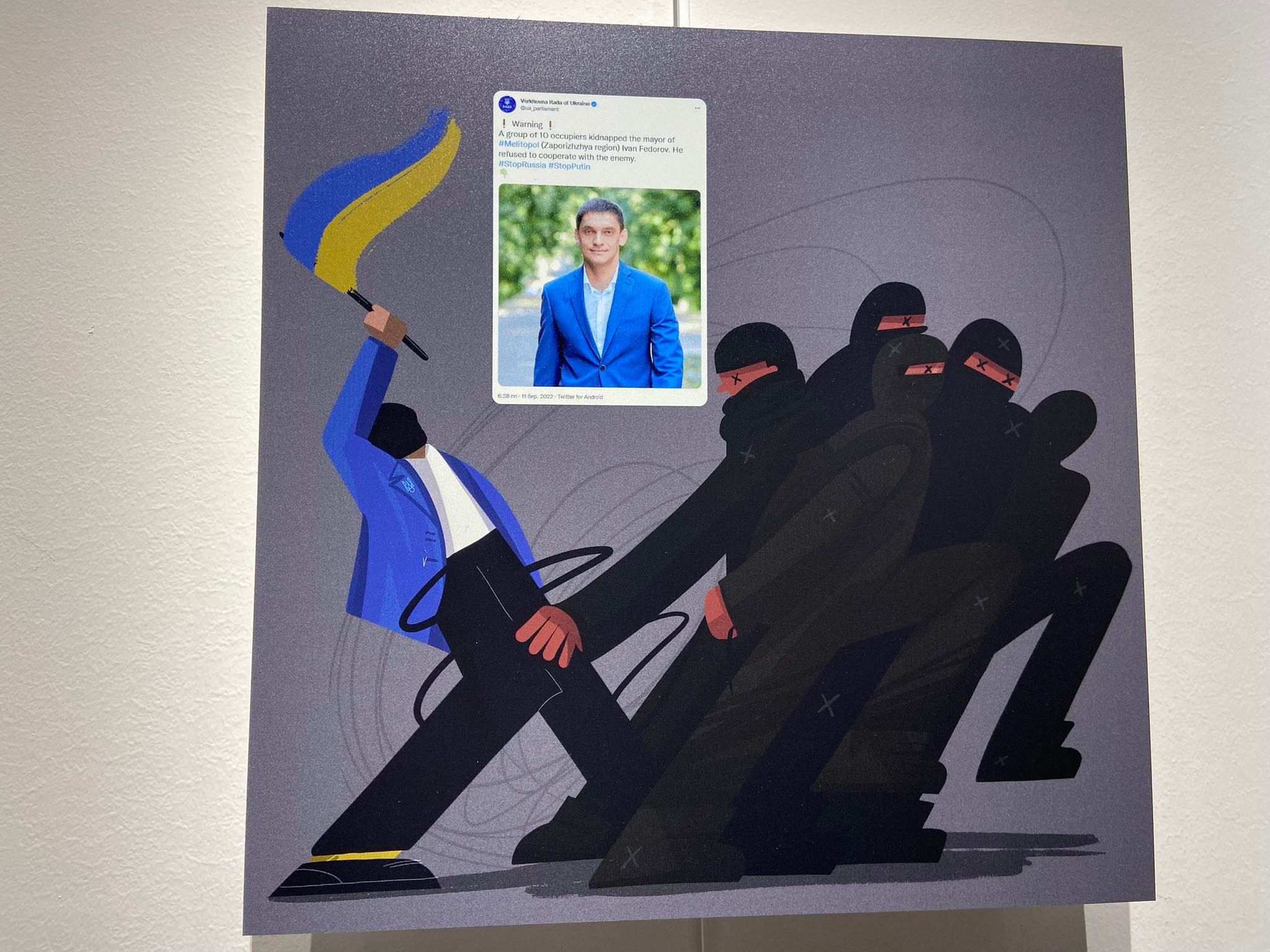Ця експозиція знаходиться у центрі ЄС, аби розповісти про біль українців тим європейцям, які ще або не зрозуміли, що в Україні триває війна, або зрозуміли, але сумніваються, чи давати Україні зброю,