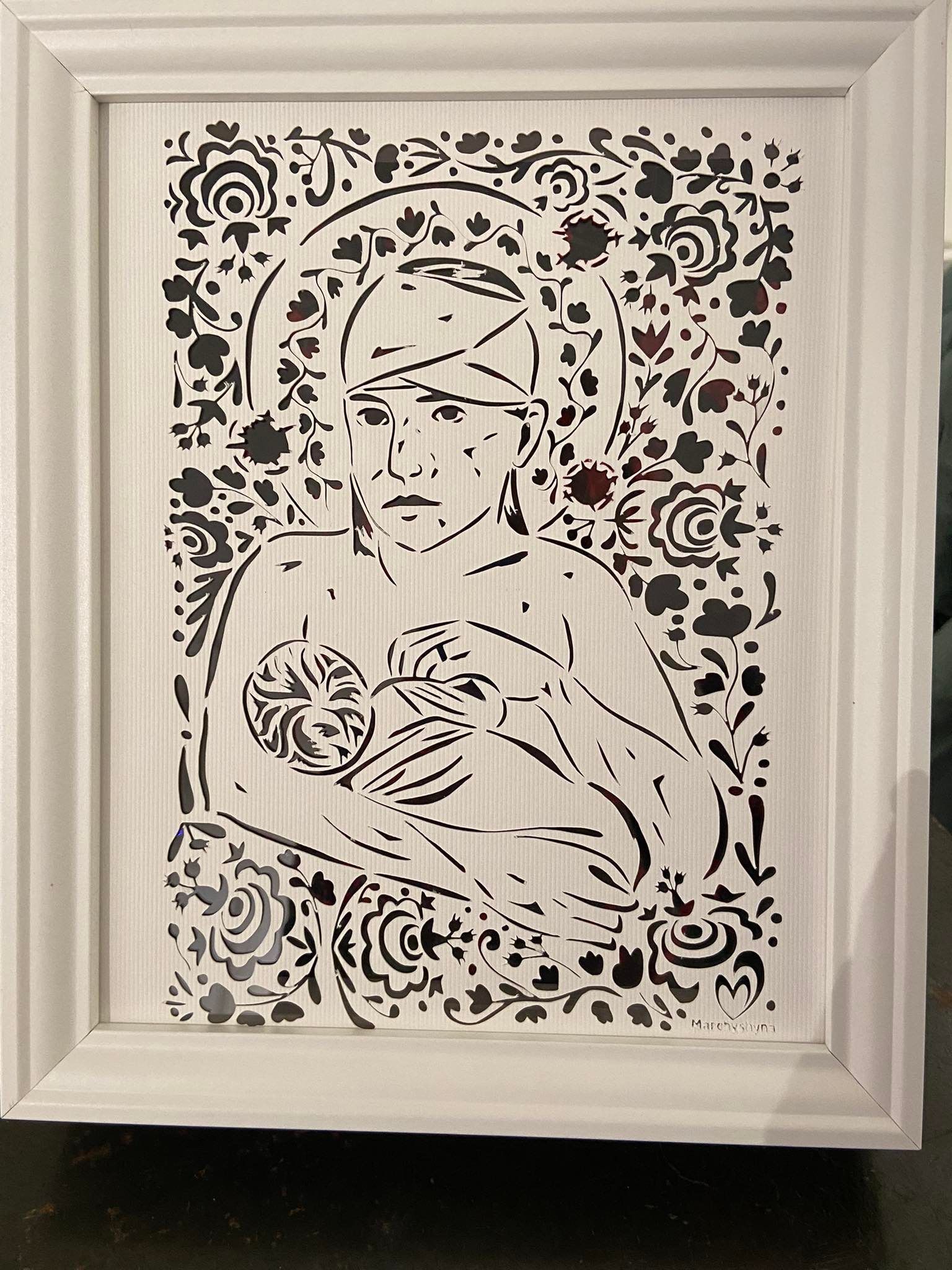 Мої роботи – це паперові витинанки. Це потужна метафора, яка показує, що всі українці зараз "порізані", ми маємо "дірки" в наших серцях чи душах. Ми, як цей листок паперу, пробитий дірками. Кожна витинанка – це зібраний образ: діти у війні, виживши уламки родин, матері у війні,