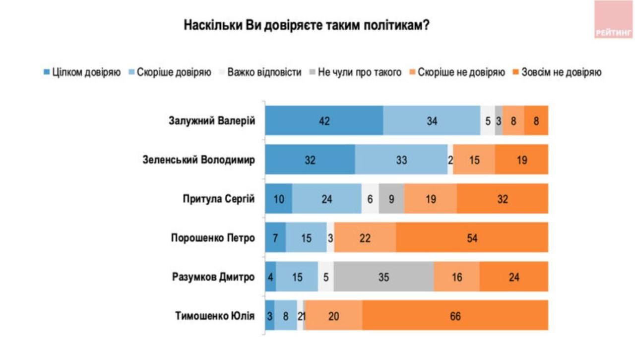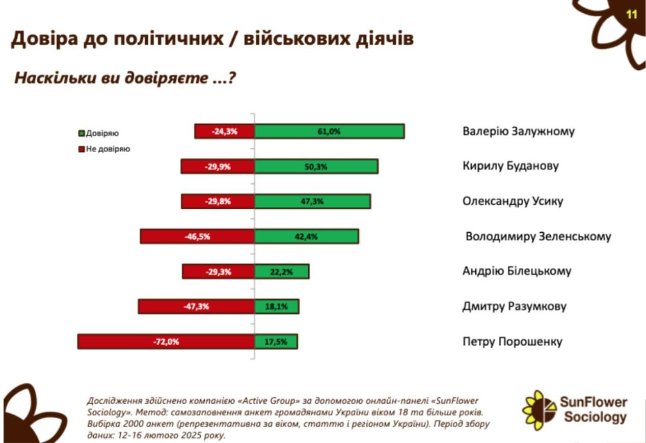 Рівень довіри до політичних/військових діячів /Скриншот даних опитування Active Group
