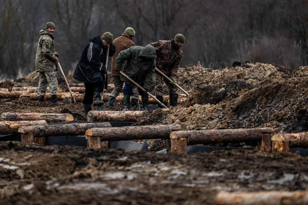 Люди та техніка працюють. Термін виконання робіт досить короткий. Наприкінці весни фортифікаційні споруди мають бути обладнані,