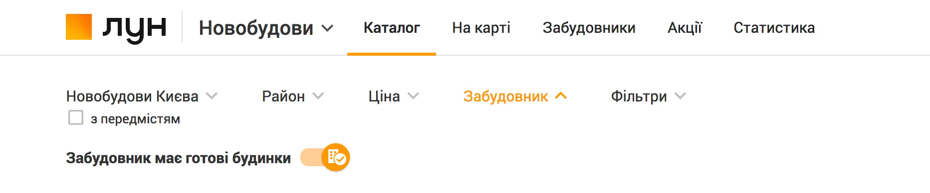 Користуйтеся спеціальним фільтром на ЛУН, щоб мінімізувати інвестиційні ризики — аналізуйте досвід забудовників та перевіряйте, чи мають вони здані в експлуатацію будинки.