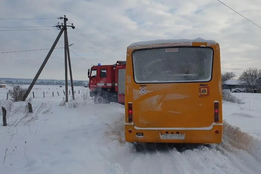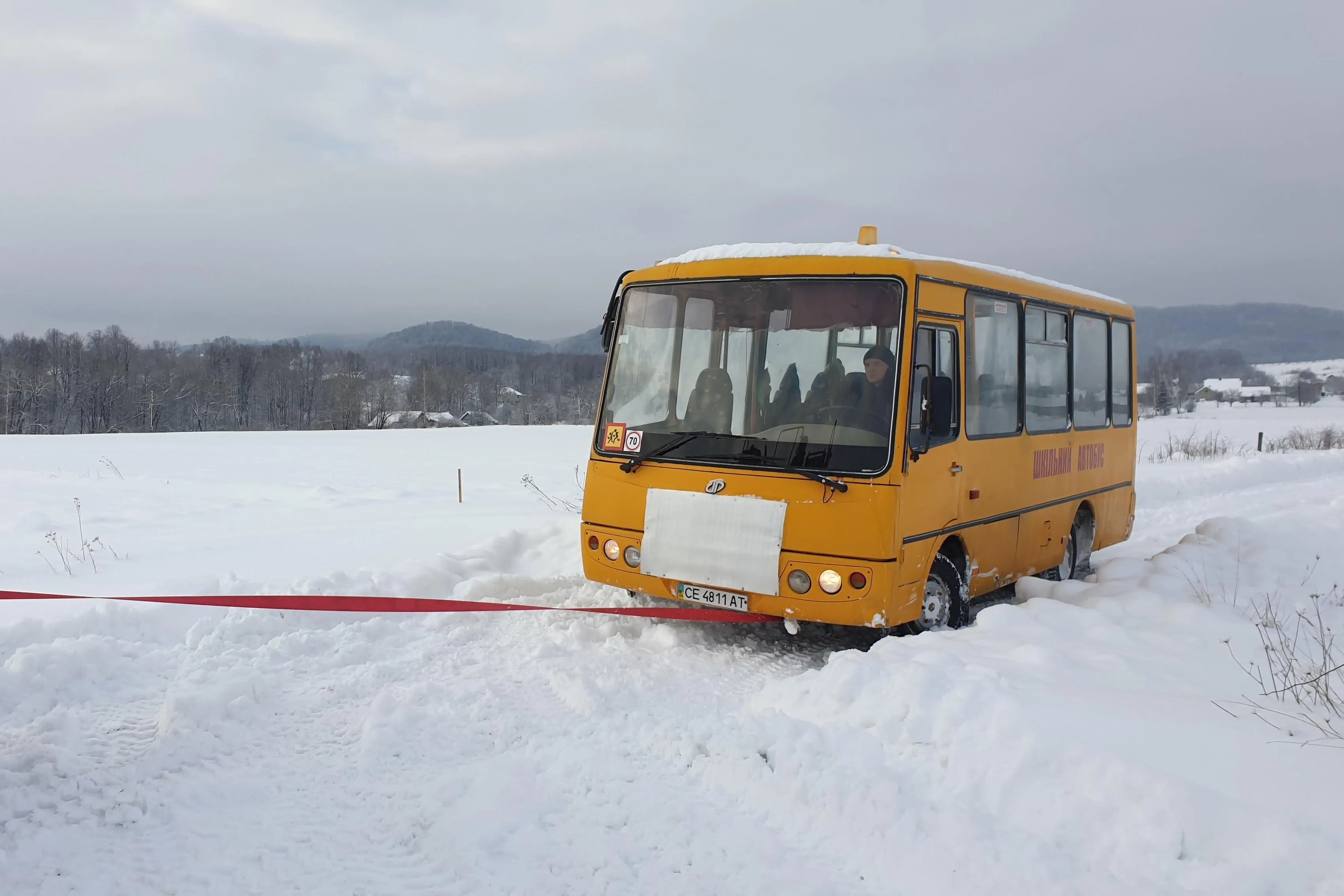 - На заметеній ділянці польової дороги застряг автобус, у якому були водій та 10 учнів. Діти їхали на навчання у Вижницю.