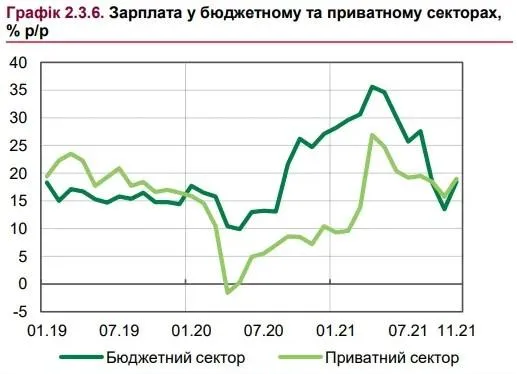 В НБУ наголошують, що вагомим чинником зростання доходів українців були зарплати у бюджетному секторі, підвищення яких підтримувалось, зокрема, зростанням мінімальної зарплати (до 6 тисяч гривень з січня і 6 500 гривень з грудня минулого року).