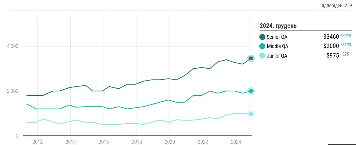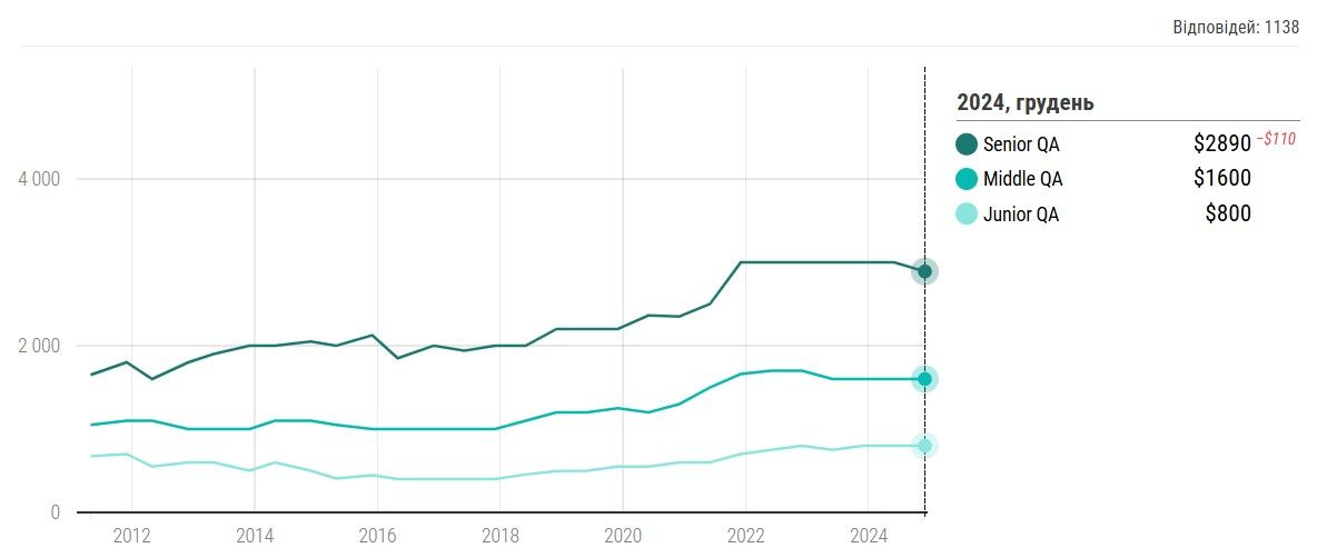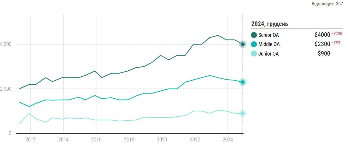 - Senior: зарплати знизилися на 200 доларів за пів року.