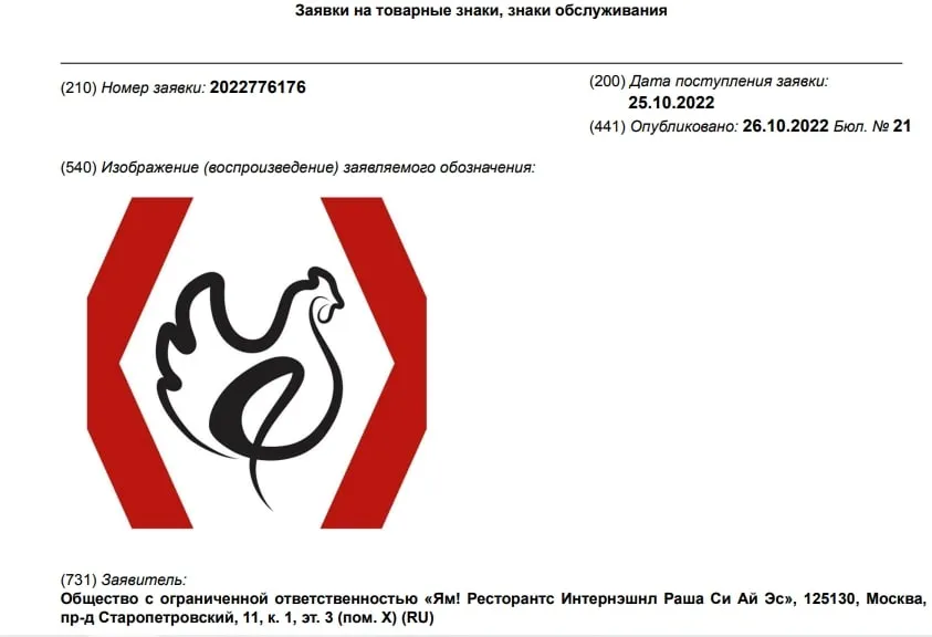 Про продаж ресторанів KFC у Росії місцевій "Смарт Сервіс ЛТД" материнська компанія Yum! Brands повідомила 25 жовтня. Того ж дня новий власник мережі зареєстрував заявку на патентування нового товарного знаку. Про це свідчать відкриті дані безпосередньо "Роспатенту".