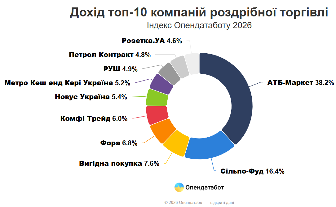 - Компанії з рейтингу ритейлу в Індексі Опендатаботу 2026 заробили понад 647 мільярдів гривень за минулий рік.