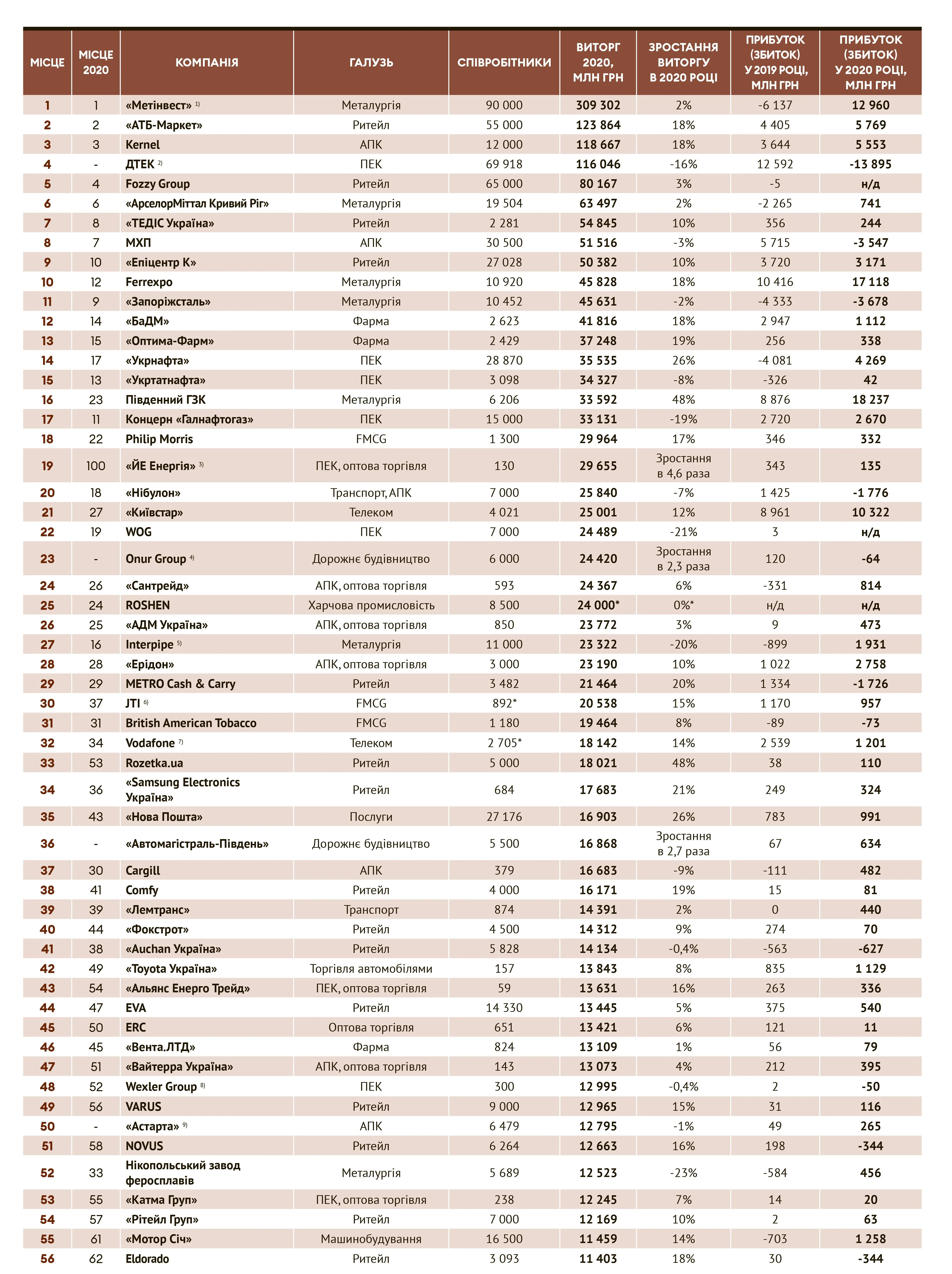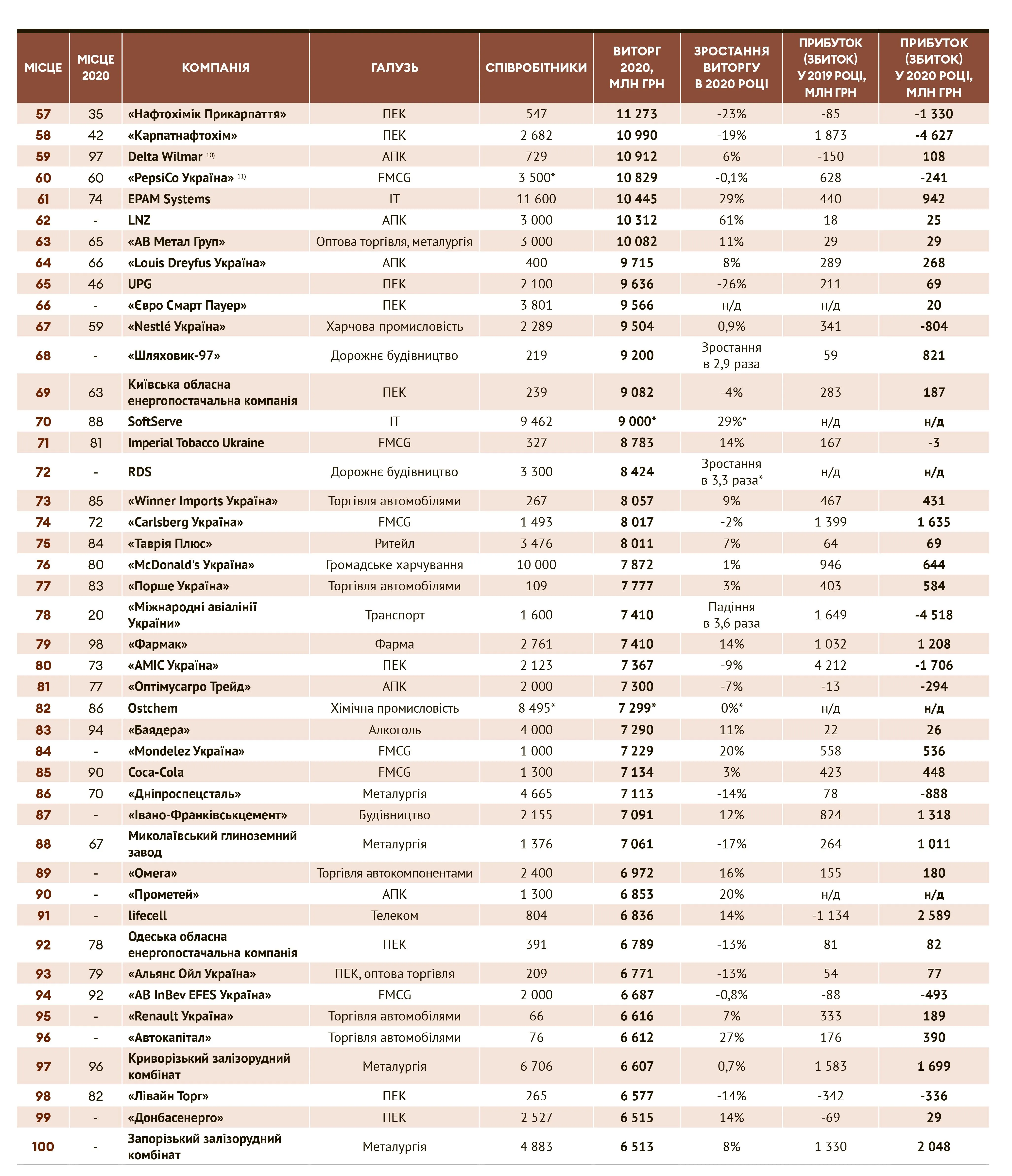 100 крупнейших частных компаний Украины 2021 / Рейтинг Forbes