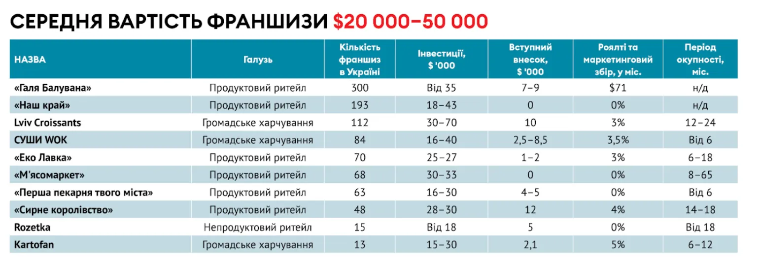 Перечень самых бюджетных франшиз / Инфографика Forbes
