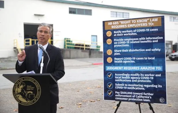 Amazon не вела стабильного мониторинга инфицирования работников COVID-19 и не предоставляла объективные данные касательно распространения болезни. По словам генерального прокурора Калифорнии Роба Бонты, халатное отношение компании и нехватка информации лишь способствовали развитию пандемии.