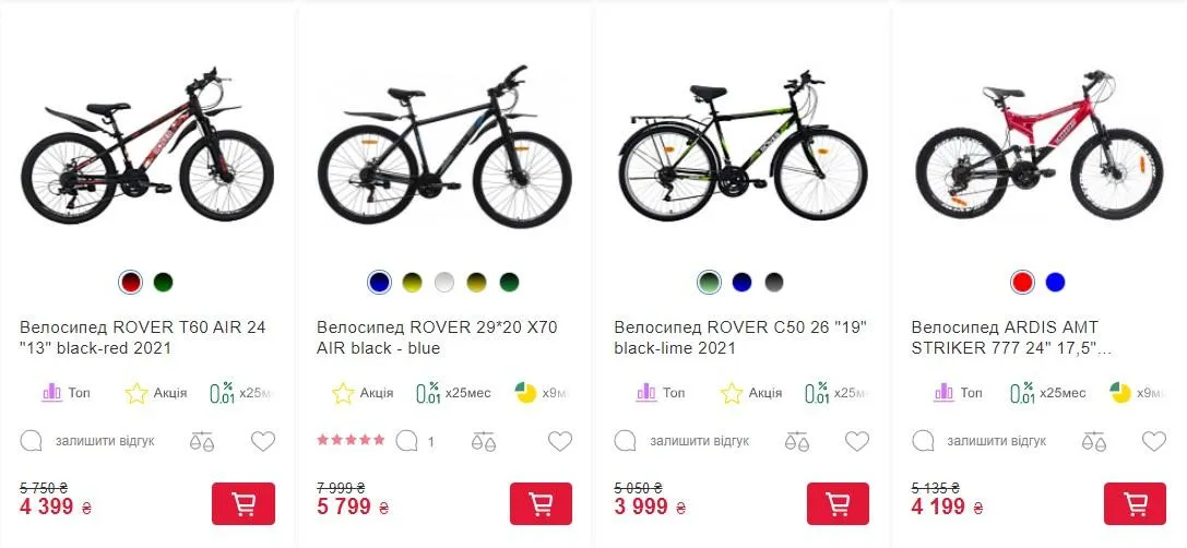Цены на велосипеды в украинских интернет-магазинах / Скриншот сайта allo.ua