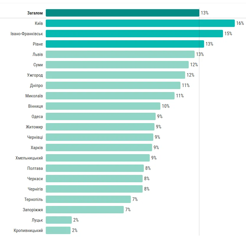 Еще меньше забронированных среди айтишников в Полтаве, Черкассах, Чернигове, Тернополе и Запорожье. Только 2% специалистов в Луцке и Кропивницком имеют бронирование.
