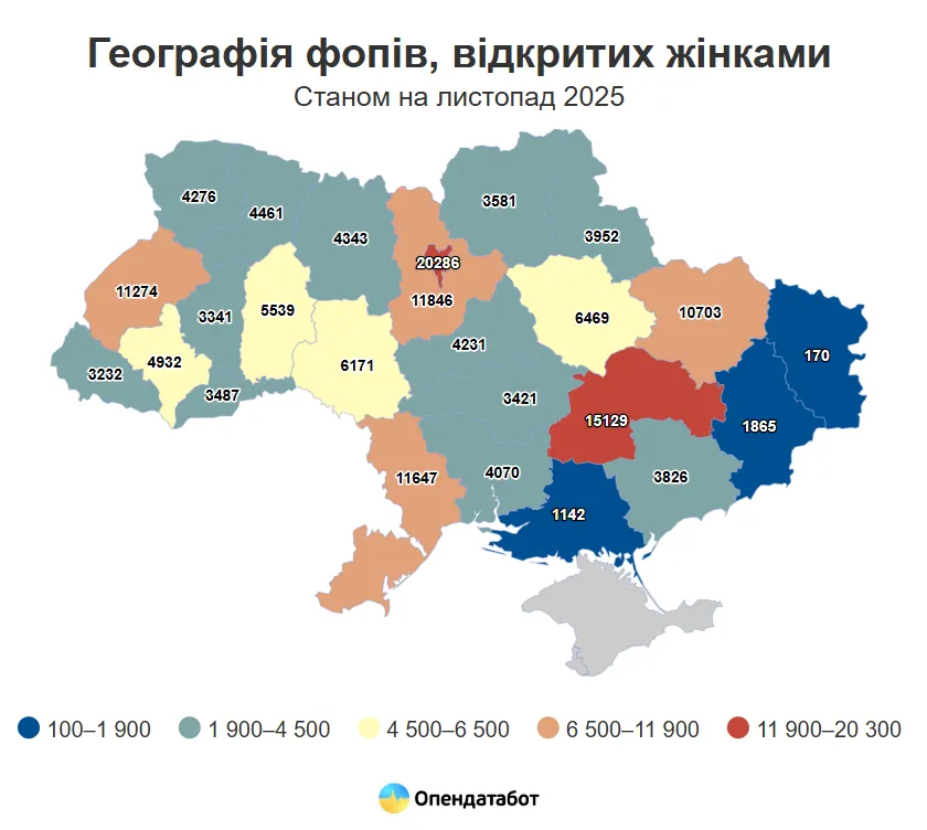 Где больше всего открыли ФЛП / инфографика Опендатабота