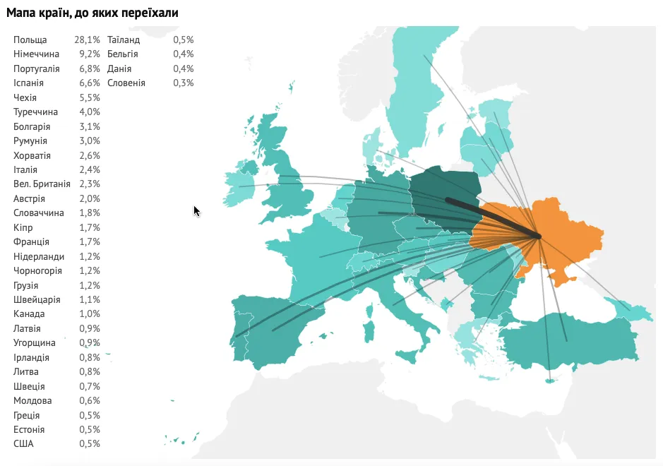 В какие страны Европы чаще всего переезжали айтишники после 24 февраля / Инфографика DOU