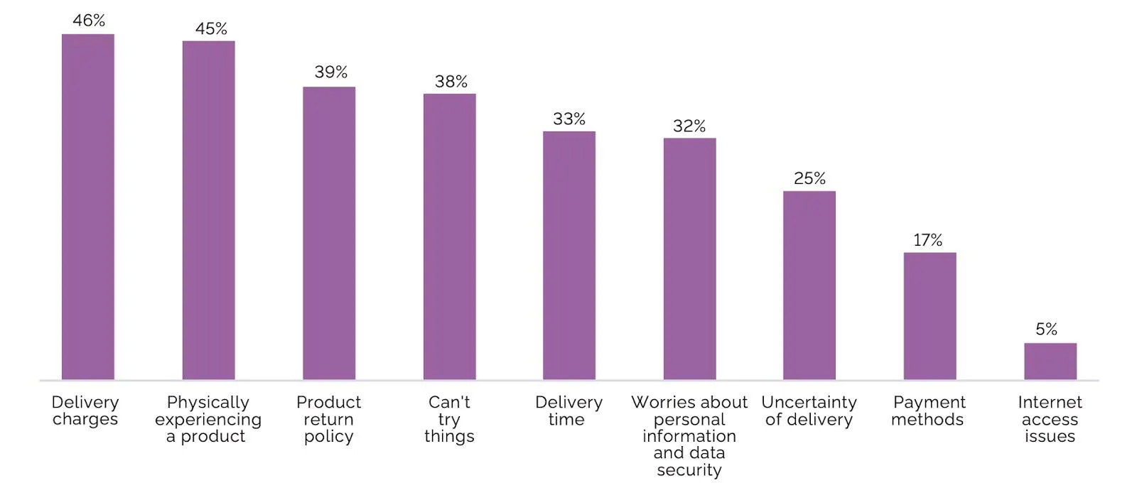 Кроме того, 39% покупателей не устраивают условия возврата товаров, а более трети опрошенных переживает за безопасность персональных данных.