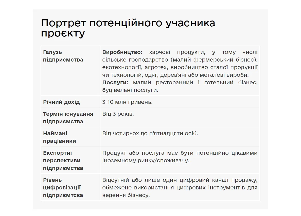 Принять участие могут предприятия, официально зарегистрированные как ФЛП или юридическое лицо. Вместе с тем к претендентам есть несколько важных требований.
