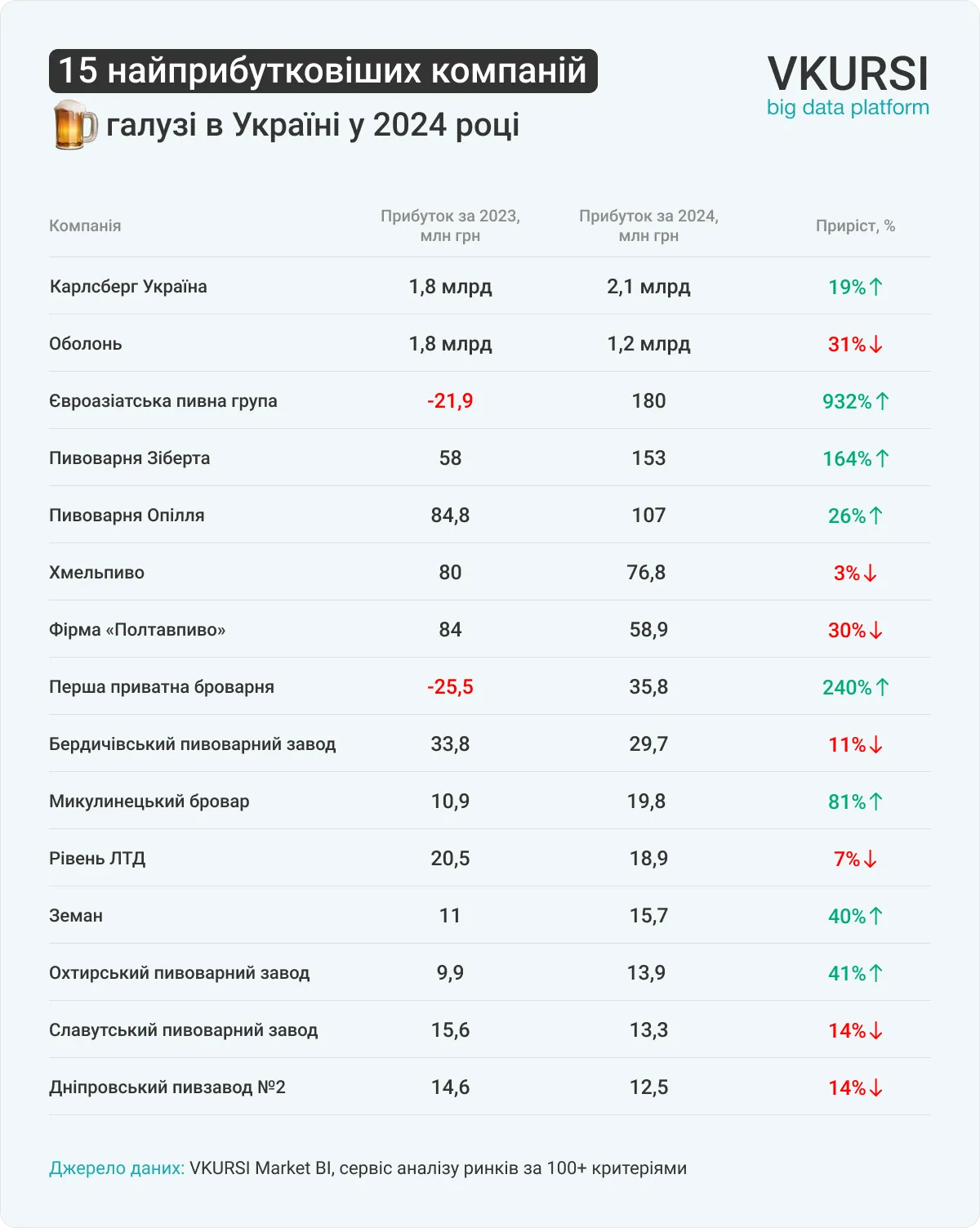 Среди других прибыльных игроков – "Оболонь" (1,2 миллиарда гривен), "Евроазиатская пивная группа" (180 миллионов гривен), "Ополье" (107 миллионов гривен) и другие.