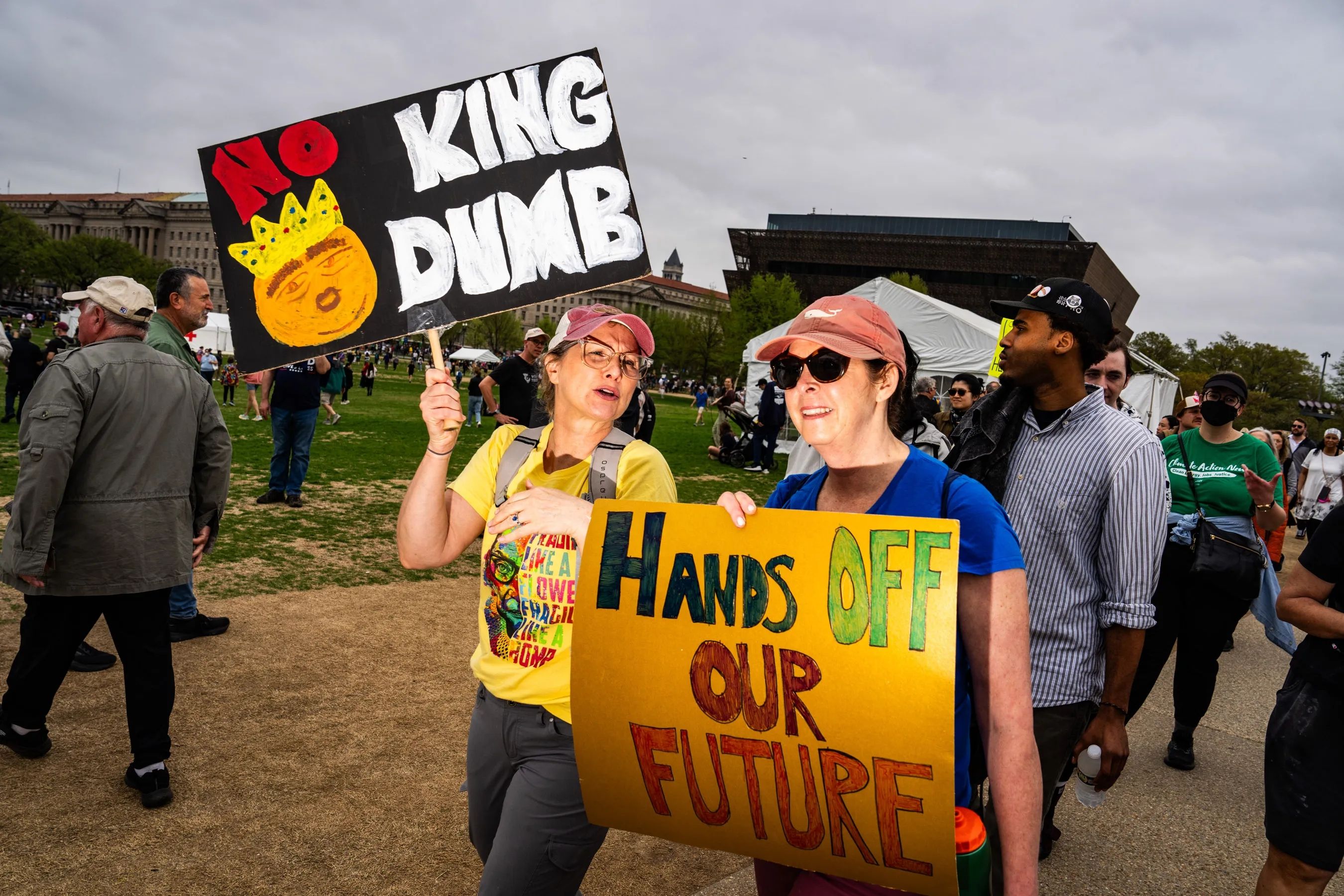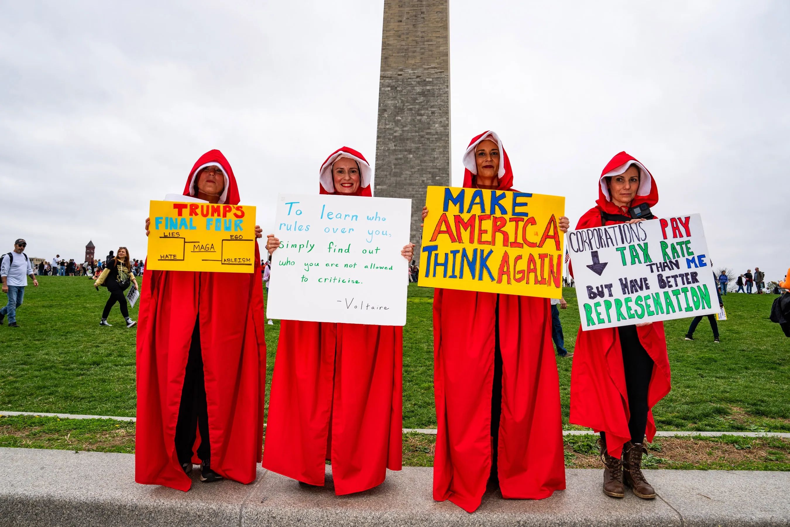 В субботу, 5 апреля 2025 года, в Вашингтоне состоялась одна из самых больших акций протеста под названием Hands Off – "Руки прочь". Около 100 тысяч демонстрантов собрались возле монумента Вашингтона, выражая несогласие с политикой президента Дональда Трампа и миллиардера Илона Маска.