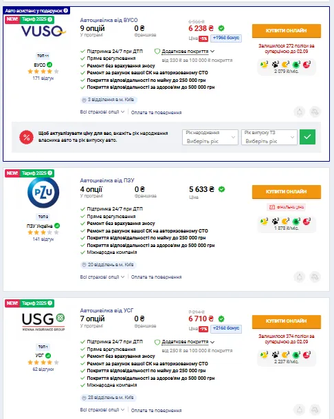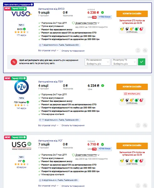 Стоимость страхования легкового авто во Львове / Скриншот с сайта Hotline