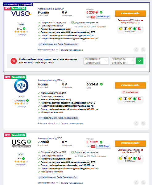 Стоимость страхования легкового авто во Львове / Скриншот с сайта Hotline