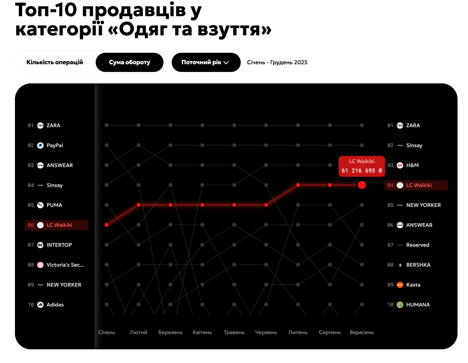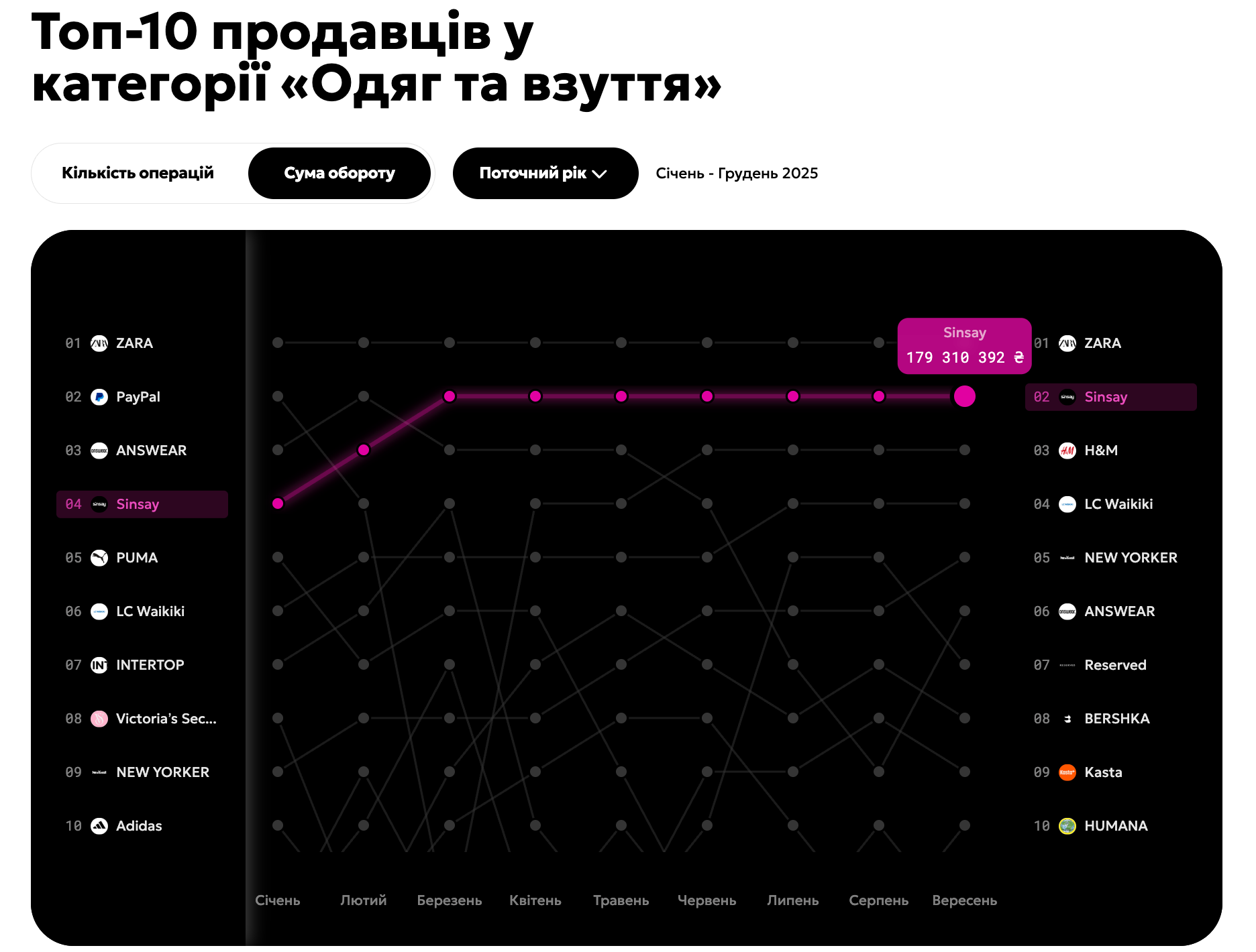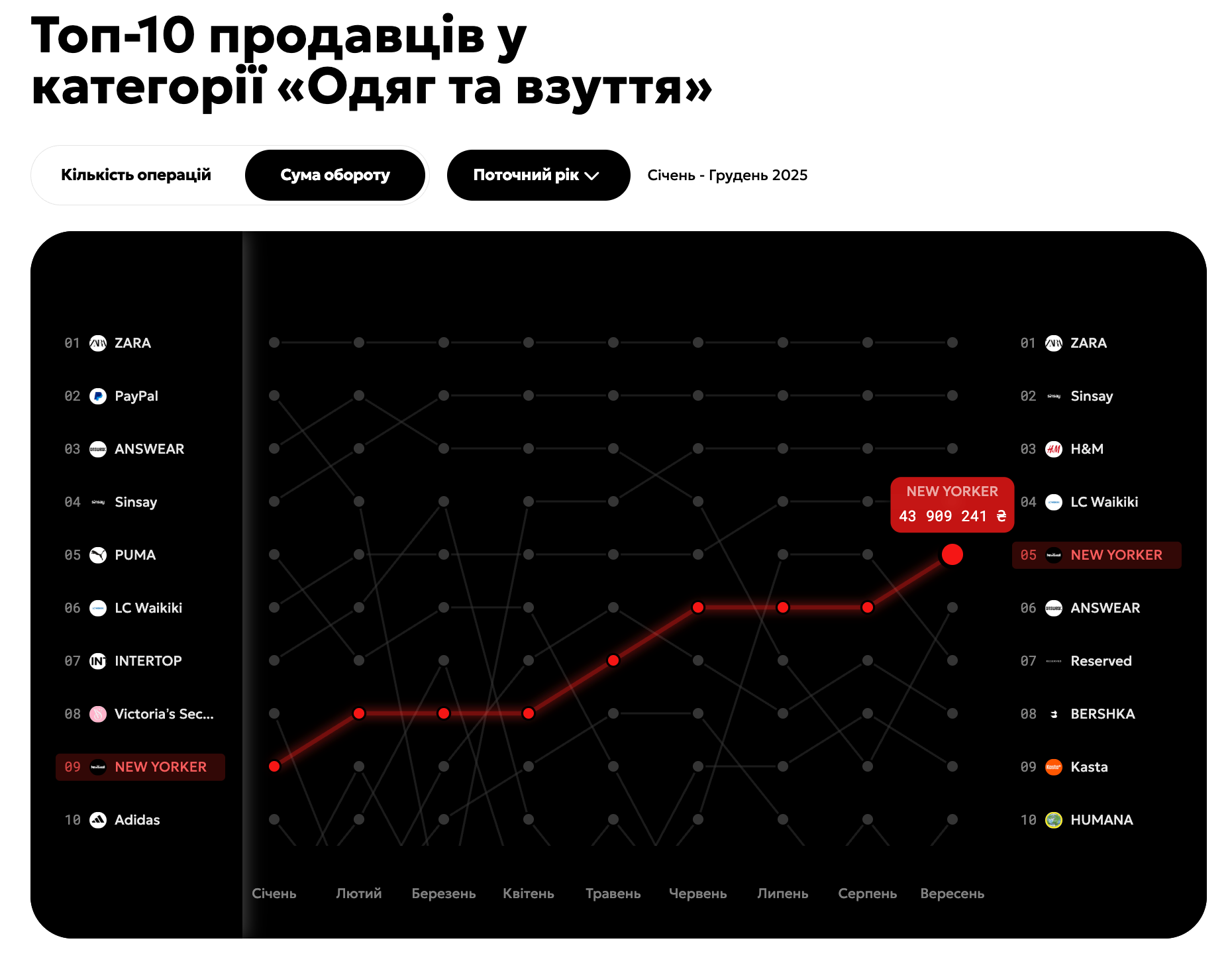 Какие магазины одежды выбирают украинцы / Скриншот 24 Канала, Дашборд от Монобанка