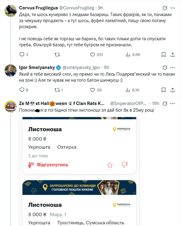 Смелянский достаточно активно отвечает на критику / Скриншот из сети X