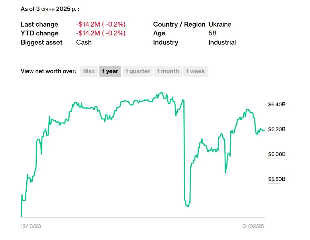Состояние Ахметова выросло в 2024 году / Скриншот Bloomberg Billionaires Index