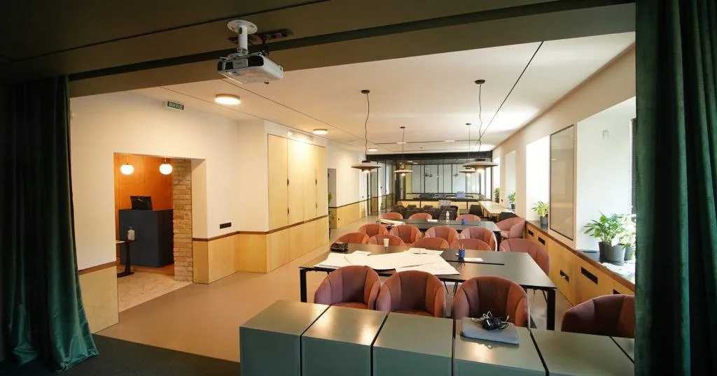 - коворкинг – рабочее пространство на 45 мест с переговорными комнатами и кухней;