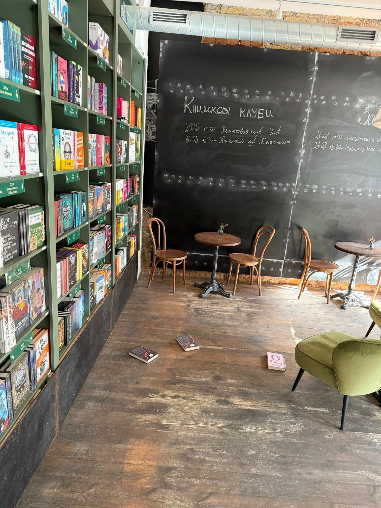 Взрывная волна повредила книжный магазин Readeat / Фото из фейсбука Дмитрия Феликсова