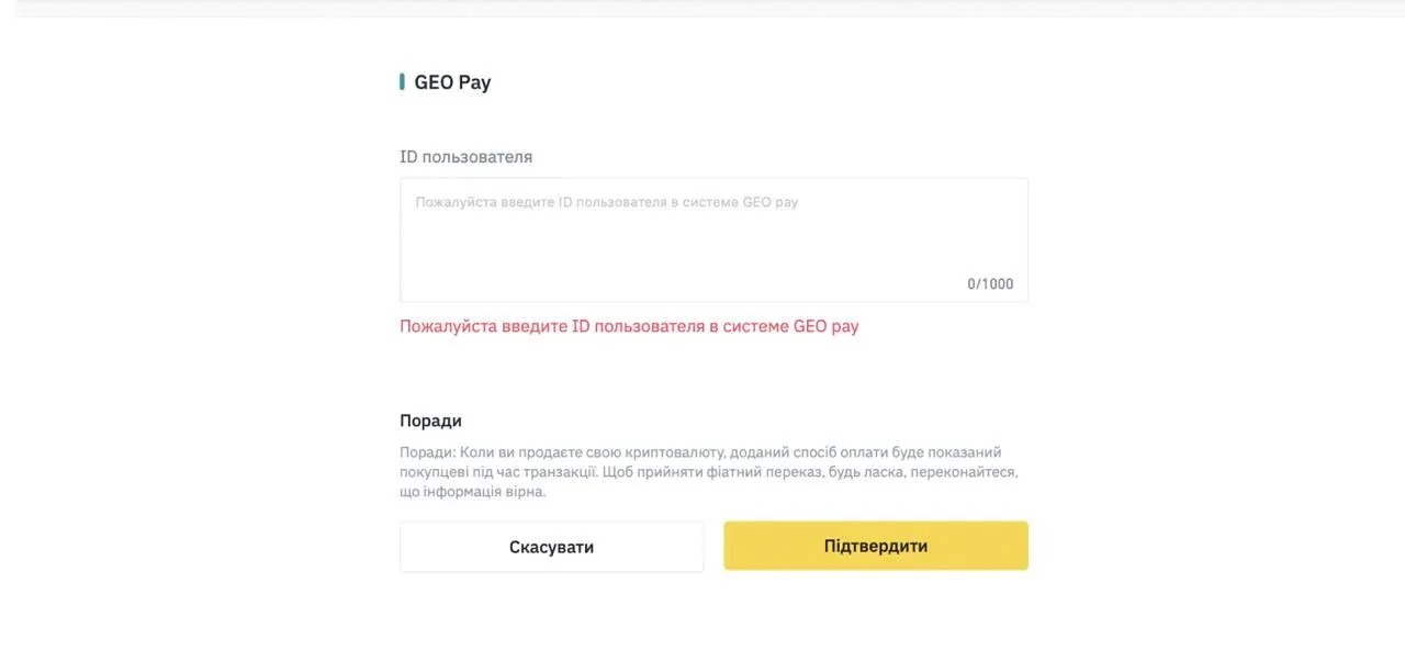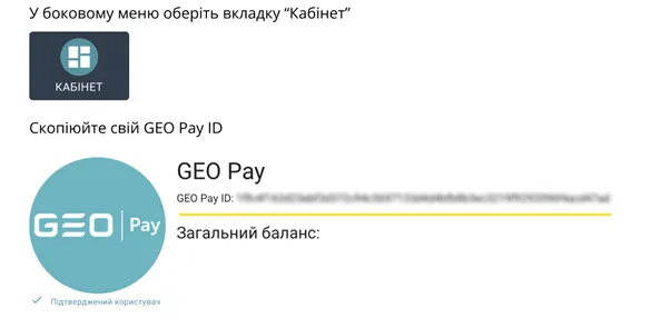 Шаг 6. Отправьте сумму UAH на GEO ID, указанный в ордере внутри сервиса GEO Pay.