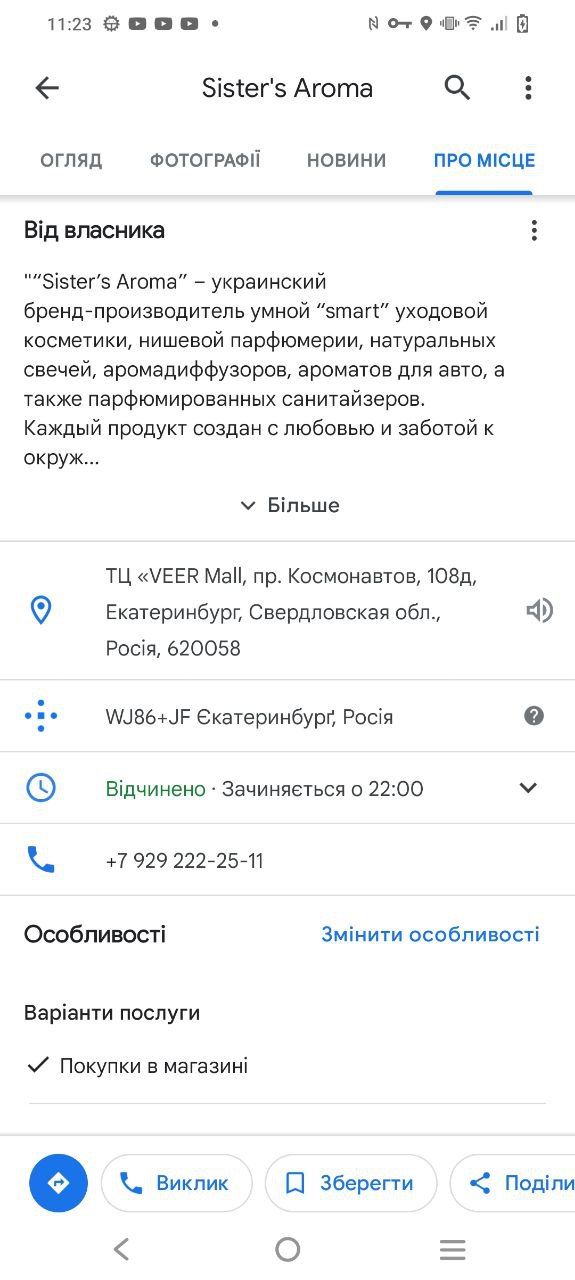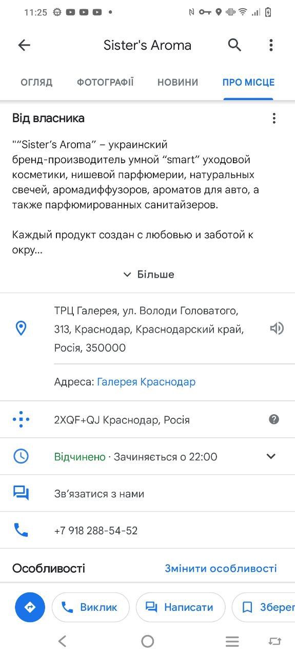 Далі – більше! Завдяки Google Maps вдалося знайти щонайменше дві активні позначки за назвою бренду. Одна з них у торговому центрі "Галерея" у Краснодарі. Проте на офіційному сайті цього закладу ні магазину Sisters Aroma, ні товарів бренду немає.