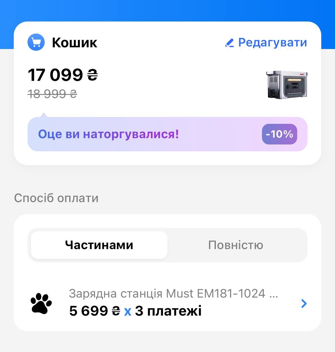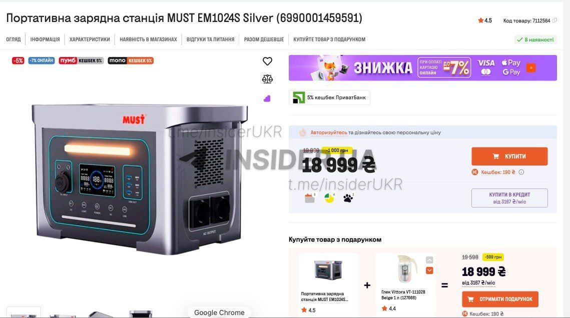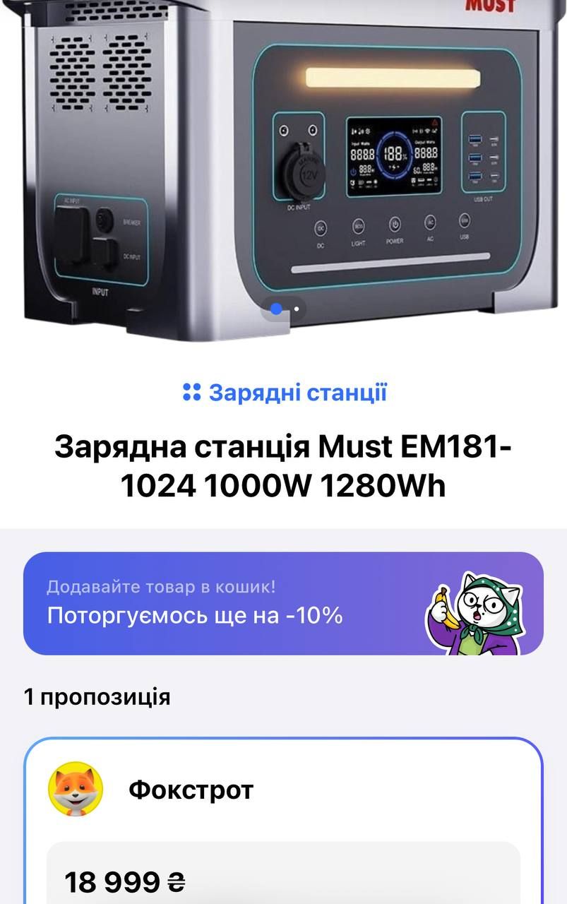 Так, на прикладі станції MUST EM1024S Silver видно, що вранці 10 жовтня на сайті "Фокстрот" її вартість становила 18 999 гривень, а вже за кілька годин ціна зросла до 15 999 гривень із "меншою знижкою", тобто фактично акція зменшилася, а кінцева сума для покупця збільшилася.