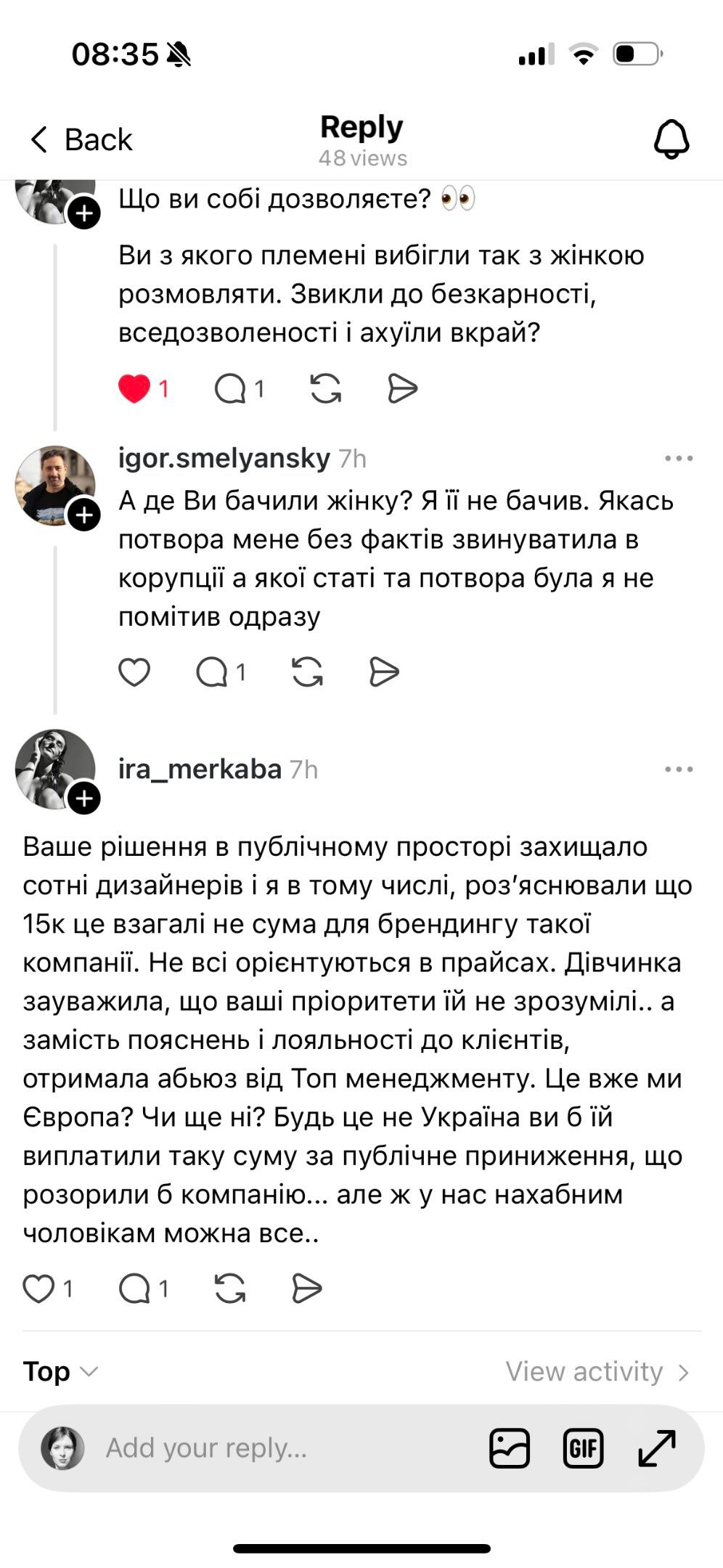 Суперечка за участю Смілянського в Threads / скриншот 24 Каналу