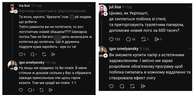 У соцмережах розгорнувся скандал щодо зміни логотипу Укрпошти за 600 тисяч гривень і реакції CEO компанії на коментарі українців щодо цього. Зокрема, одну з коментаторок Ігор Смілянський назвав повією.