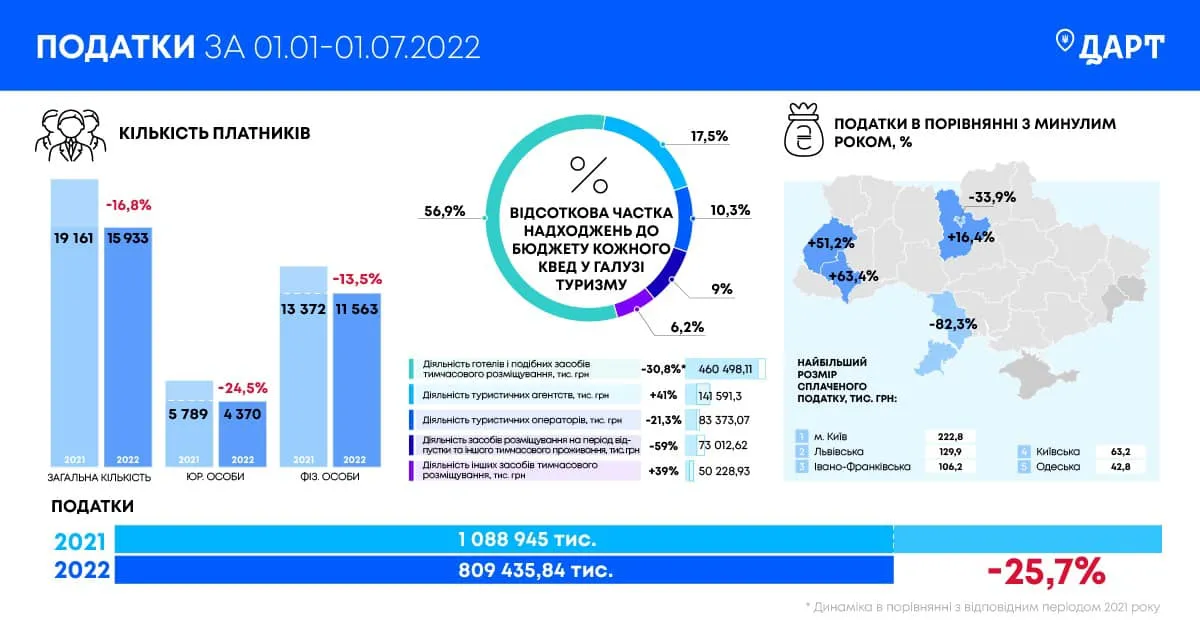 Скільки податків сплатила туристична галузь за перше півріччя 2022 року / Інфографіка Мар'яни Олеськів