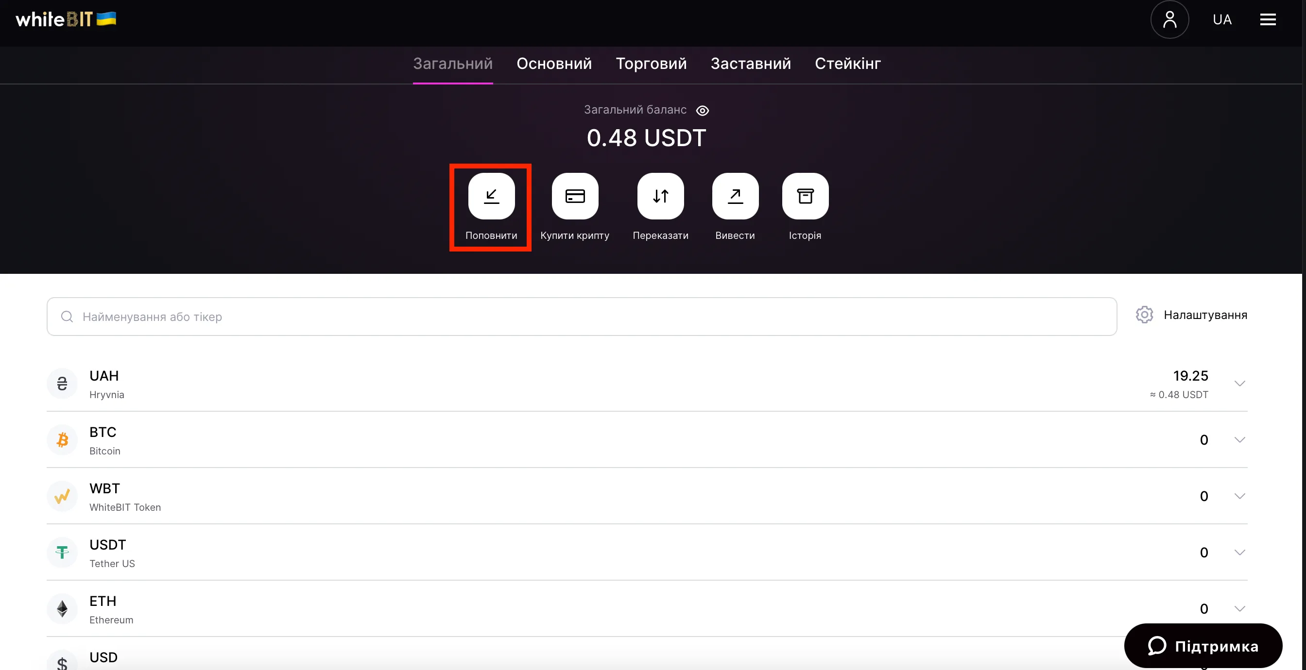 6. Протягом декількох хвилин після підтвердження кошти надійдуть на ваш рахунок WhiteBit.