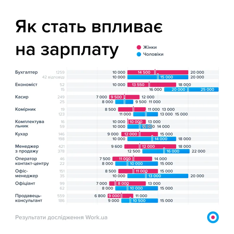 У дослідженні навели 10 найпоширеніших нині вакансій, де чоловікам пропонують вищі зарплати, ніж жінкам, зокрема: