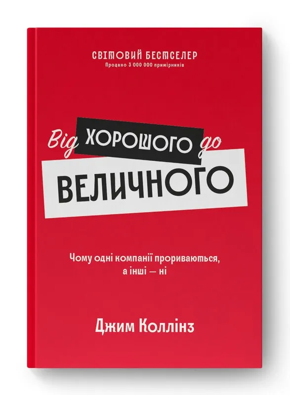 Це основоположна бізнес-книга, яка визначає ключові фактори, що відрізняють середні компанії від справді величних. Завдяки емпіричним доказам і переконливим тематичним дослідженням книга пропонує практичні ідеї для лідерів і організацій. У цій книзі також пояснюється, чому деякі компанії зазнають краху або їхній прогрес з часом стагнує, і чому лише кілька компаній стають величними.