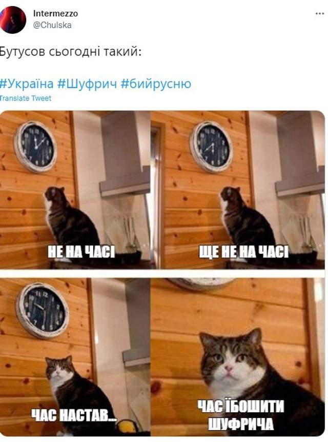 Після того, як Бутусова та Шуфрича таки розтягнули, нардеп від ОПЗЖ покинув студію, проте ненадовго. У цей час Савік Шустер вирішував, чи взагалі продовжувати йому програму. Розмову таки продовжили. Проте на цьому епопея не завершилась – Шуфрич повернувся у студію: переодягнутий та з якоюсь папкою.